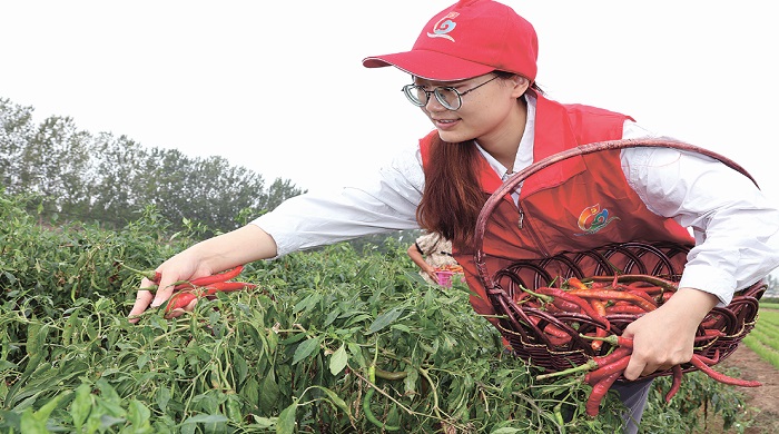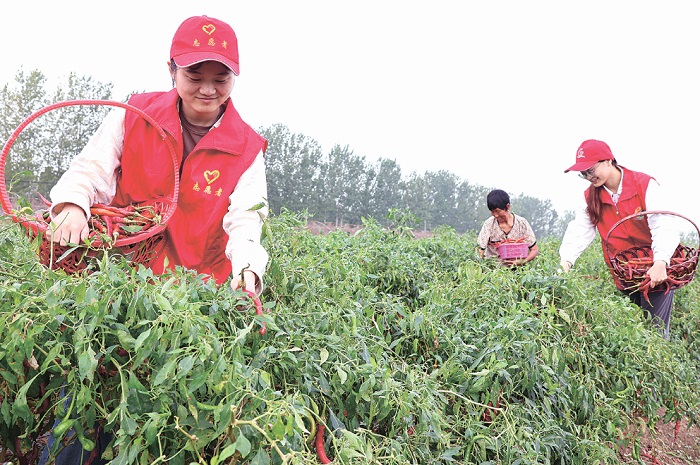 日前,灌南縣田樓鎮田樓村循環經濟園,鄉村振興專干和農戶一起收獲辣椒供應市場。入秋以來,田樓鎮組織全鎮志愿者小分隊,深入村組田間地頭,服務農村助力鄉村振興,受到全鎮廣大干群好評。