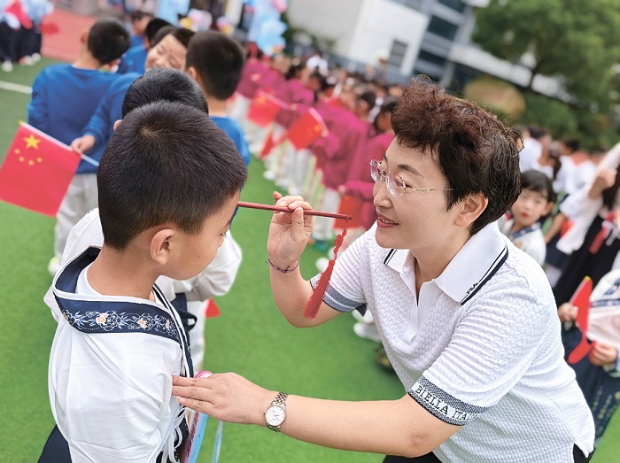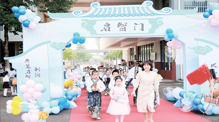 昨日,師專三附小及凌州路校區(qū)為一年級(jí)新生舉行了以“稚子心向國 快樂啟新程”為主題的入學(xué)儀式。孩子們?cè)诶蠋煹囊龑?dǎo)下,滿懷期待地走過象征新起點(diǎn)的“啟智門”,接受了寓意開啟智慧的“朱砂啟智”,并用鏗鏘有力的“擊鼓鳴志”宣告自己小學(xué)生涯的開始。